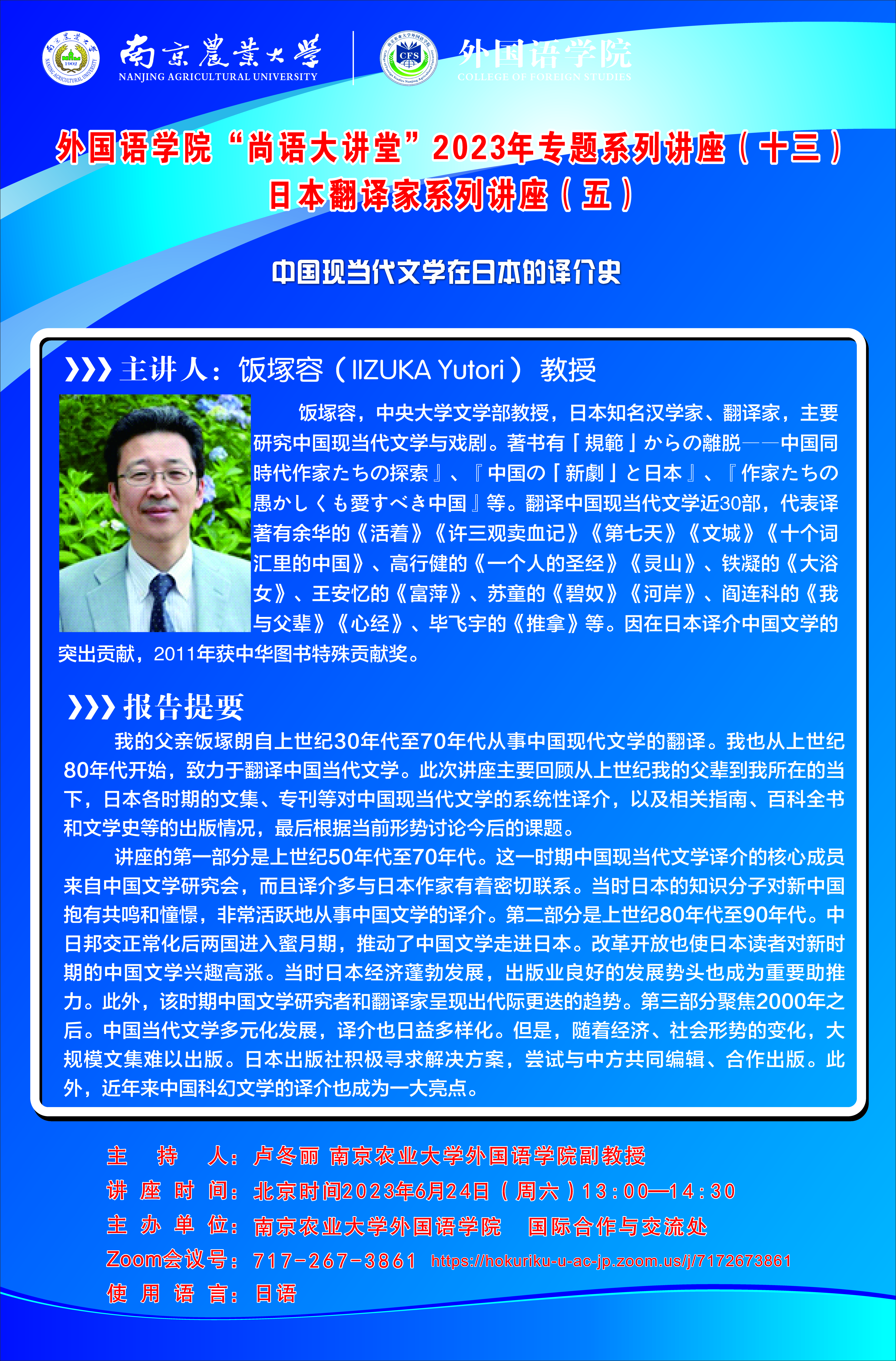 报告题目:中国现当代文学在日本的译介史