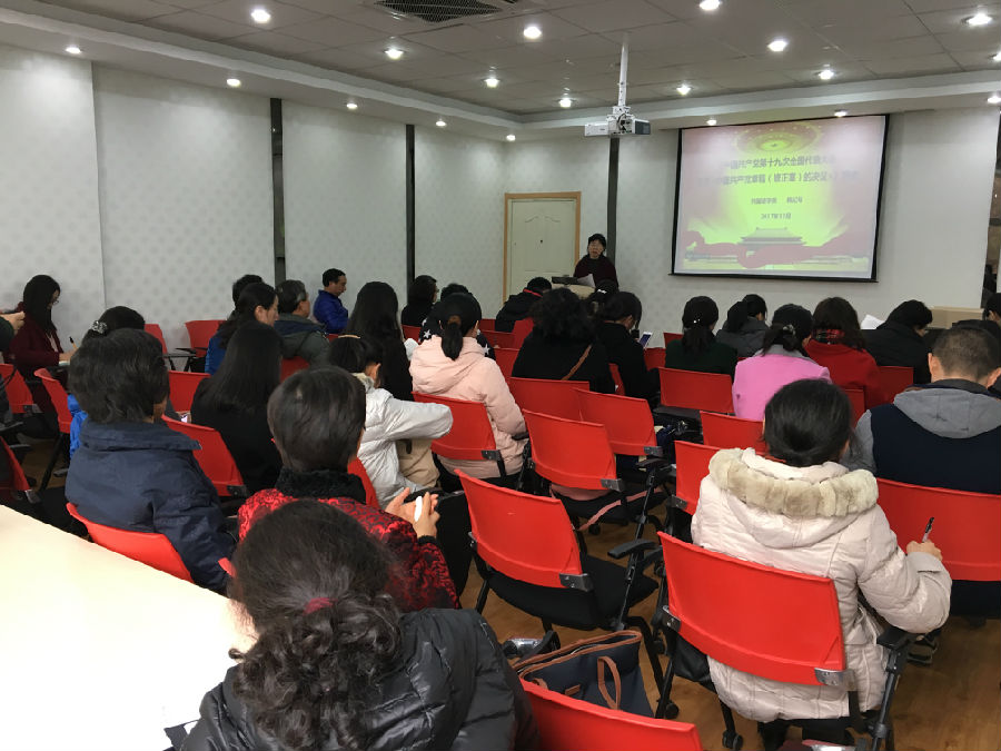 党委在教学楼A310召开了全院教职工党员大会。院党委书记韩纪琴给全体教职工党员作了题为“学习党章,遵循党章,做合格党员”的专题教育党课。