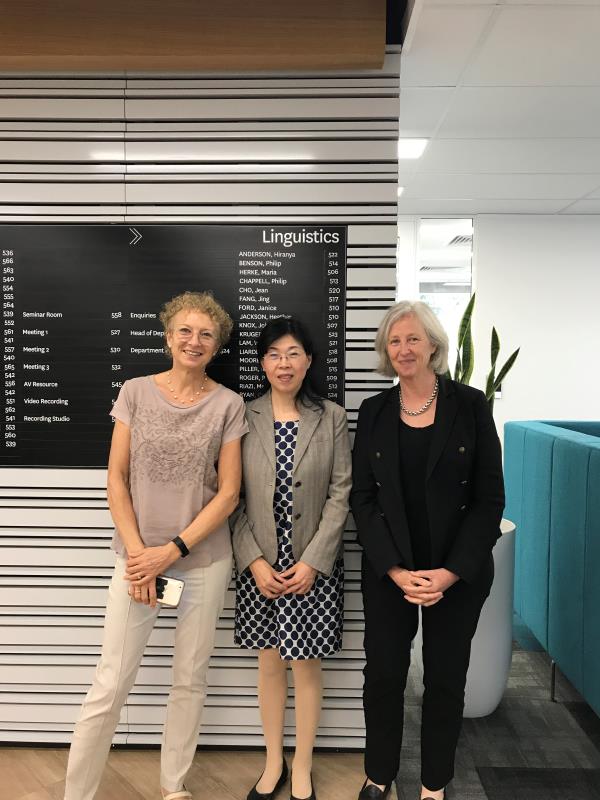 9月27日,借参加悉尼大学举办的国际会议之机,韩纪琴访问了麦考瑞大学,和人文科学院(Faculty of Human Sciences)分管国际合作的副院长Lynda Yates 教授和翻译学主任Helen Slatyer博士就MTI的学生联合培养进行了具体磋商。目前对方的课程对接任务基本完成。该校国际部亚太区负责人Stella Wang全程陪同访问。