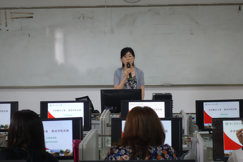 首先,学院党委副书记董红梅从社会实践、招生和党建三方面对上学期的学生工作进行了总结,介绍了“听外国声音讲中国故事”的学生暑期实践活动。随后,针对目前学生工作面临的挑战,尤其是如何提高升学率提出了工作思路,希望得到全院教职工的支持。