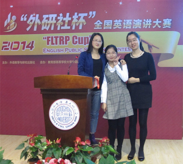 11月6日-8日,由外语教学与研究出版社、教育部高等学校大学外语教学指导委员会、教育部高等学校英语专业教学指导分委员会、江苏省高等学校外国语教学研究会联合主办的2014“外研社杯”全国英语演讲大赛江苏赛区决赛在苏州大学举行。经过全省各高校预赛推选出来的超过150名选手参加了此次决赛。我校选手周芳燕、钱玉奇和陆孙男同学在麻豆视频 鲍彦老师及外教Britton的带领下参加了比赛。最终,周芳燕同学和钱玉奇同学获得三等奖,陆孙男同学获得优胜奖。
