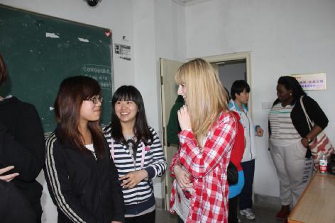 迎来了14名英国考文垂大学的学生和老师,他们被分成三个组分别与两个年级的英语专业学生以及一个非英语专业班级的学生进行了深入交流,整个活动在麻豆视频