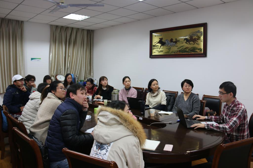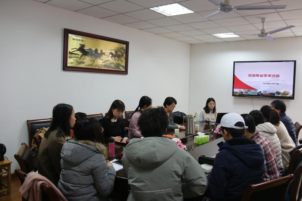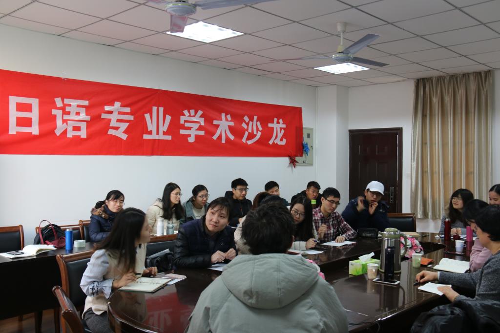 日语硕士学科点举办的研究生学术沙龙在教学楼E302举行。2017级和2018级全体学硕、翻硕研究生和李红、卢冬丽、陈海涛老师参加了本次活动,学院领导曹新宇老师到现场予以指导。