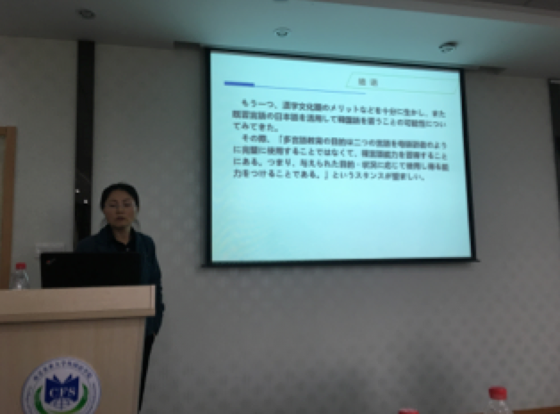 “日语系建设交流报告会”第三次会议在教学楼A310顺利召开。此次报告会特别邀请了田原老师出席,由日语系副教授金锦珠老师以「多言語社会における日本語教育」为题作了报告。报告会由石碧老师主持,学院日语系教师及部分研究生参加。金老师以中国的多语种社会状况为引子,汇报了面临转型的日语现状,探讨了在先进的语言习得理论之下,如何开展日语教育,培养出符合教育部大纲要求的日语人才。金老师的报告,引用了很多实例,生动地反映了日语教育的现状和问题,其中肯的建议对麻豆视频