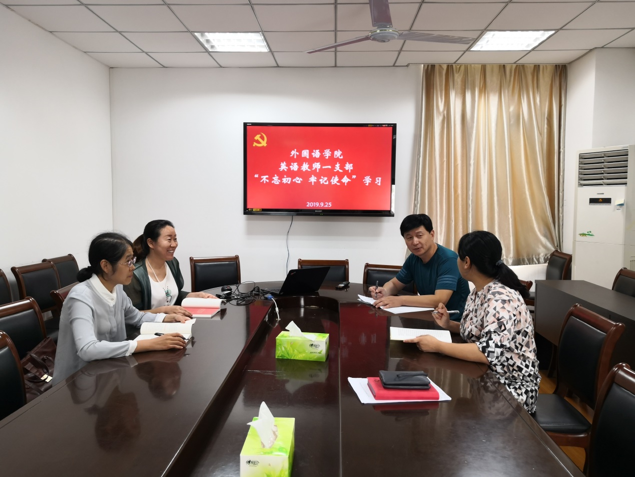 英语系教师支部召开“不忘初心、牢记使命”主题教育动员会。会上,张友琴同志向支部成员传达了本支部在10月至11月主题教育的详细学习计划。
