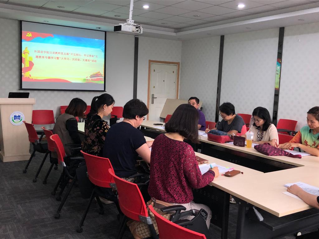 日语教师党支部于教学楼A310组织开展“不忘初心、牢记使命”主题教育专题学习暨“大学习、大讨论、大落实”活动。会议传达了学校和学院党委深入开展“不忘初心、牢记使命”主题教育活动的通知、具体要求以及日程安排。全体党员学习了《习近平新时代中国特色社会主义思想学习纲要》。