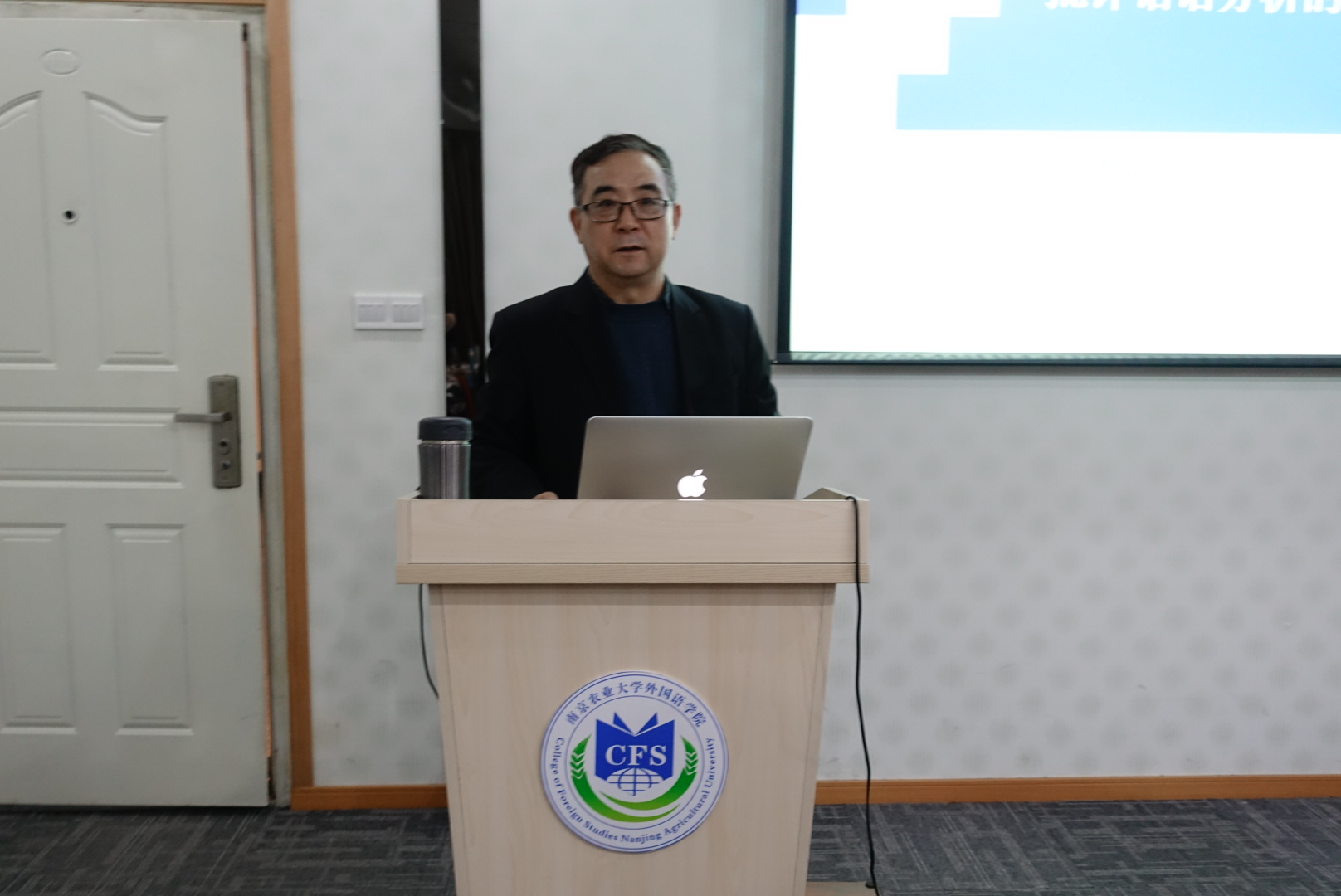 田教授首先从自己长期从事CDA的经历出发阐释自己对CDA的独特理解,提出其是一种后现代主义思潮下动态多元的学术研究。介绍了CDA关心的核心问题及其发展阶段、基本特征、领军人物和理论原则。他强调CDA是研究语言使用和社会实践之间联系的学术,而不是为了批评什么。在此基础上,他进一步讨论了CDA的研究方法,包括费尔克劳的“辩证关系方法”和沃达克的“话语历史方法”等。最后,他论述了在中国语境中从事CDA研究的现实意义,并针对农业院校外语学科发展提出主动融入主流学科,实现跨学科发展的建议。报告结束后,在座的师生与田教授进行了交流互动。报告在掌声中圆满落幕。