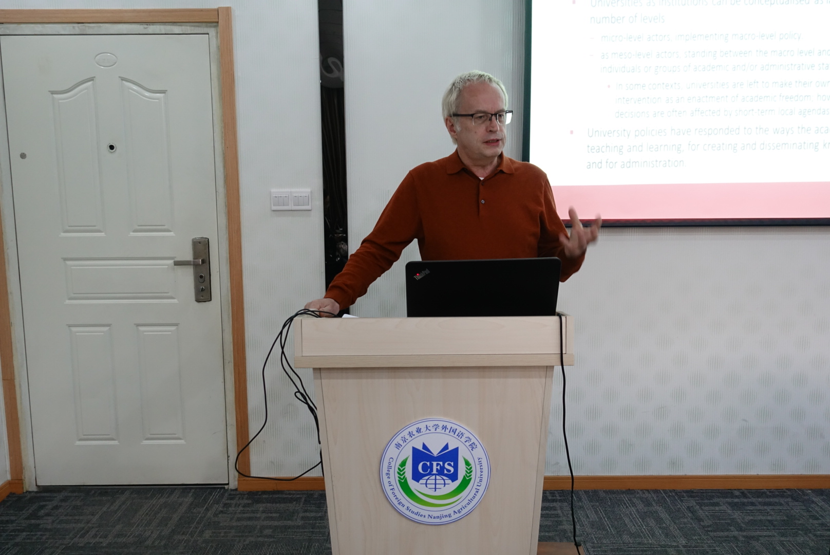 Liddicoat教授首先强调大学是处于国家层面的语言政策和个体使用者之间的中观层面的语言规划者。随着教育国际化程度的日益提高,语言使用和多语种问题成为大学实现教学、研究和管理功能的核心问题。他表示当代大学语言环境十分复杂,在很多欧洲国家和英语为官方语言的其他国家,不仅学生团体日趋国际化,本国学生的第一语言也越来越多样,但是在教学和研究中英语的核心定位却越来越显著。