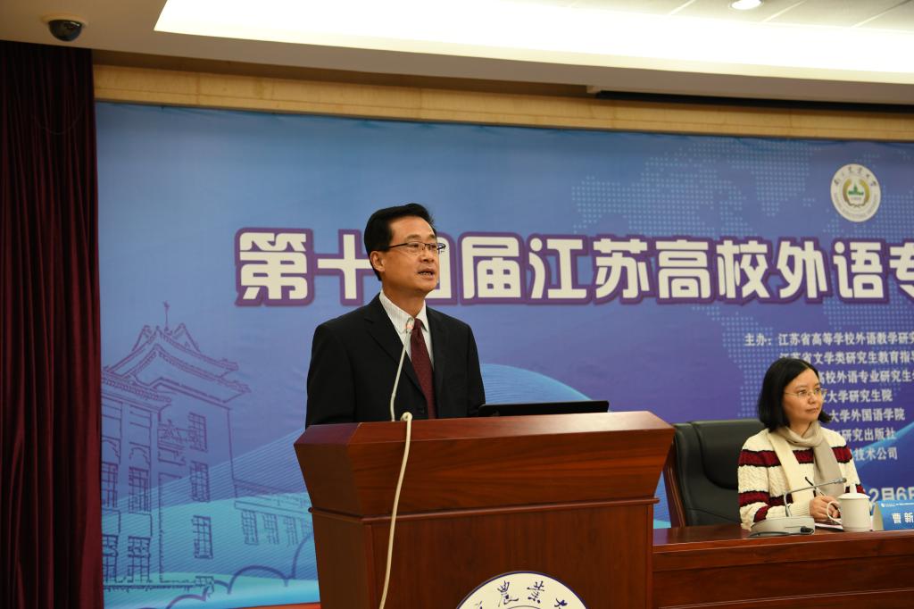 副校长胡锋出席开幕式并致辞。他指出,南京农业大学近年已成为我国培养高层次专门人才的重要基地之一,在研究生教学、科研、人才培养以及合作办学方面取得了显著成绩。当下,“一带一路”倡议、“中国文化走出去”等国家战略为外国语言文学的人才培养提供了新的契机和空间。他表示,外语专业的研究生不仅需要培养外语语言运用能力,更应学习中外优秀文化,培育中国情怀,坚定文化自信,扩展国际视野,增进国际理解,逐步提升文化沟通能力、思辨能力、学习能力和创新能力。我校将借此机会,加强同省内高校外语界的交流,立足学校发展的需求,构建自身的特色,进一步提升研究生外语教育办学水平、科研水平和学术影响力。