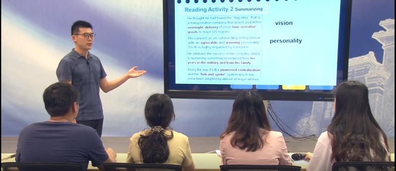 本届比赛以“语言与育人融合的外语课程与教学设计”为主题,分为大学英语组和英语类专业组。外语院领导依据比赛新要求“教师以团队形式参赛”,精选公共外语系优秀教师结成协作团队。团队成员选取《新视野大学英语》中“Fred Smith and FedEx: The Vision that Changed the World”作为参赛课文;并细致研讨,以题眼“vision”一词为入口,深入挖掘外语课程中的文化内涵与价值理念。在备赛过程中,王菊芳、王薇、朱徐柳、胡苑艳结合我校为著名农科强校的特殊优势,结合校情学情,从实际出发,以特色为基,认真修改教学设计方案;朱禹函在授课视频中积极结合本校学生的知识结构,力图实现语言知识及技能培养与育人目标的有机融合。