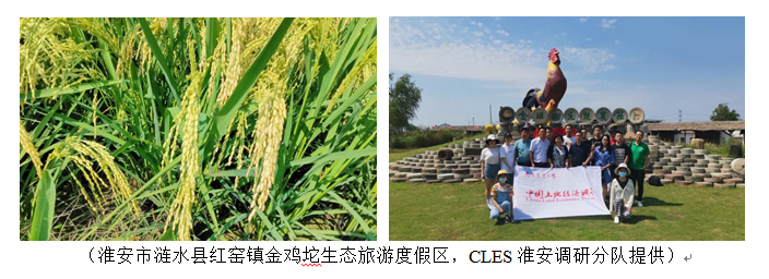 河湾村产业主要以莲藕种植为主,面积达2400亩,利用省道235、古盐河交通以及紧密相连的金鸡坨生态旅游度假区的优势,依托藕田打造旅游观光带,设施农家乐等现代服务以及进行莲藕深加工等项目。上午调研结束后,团队慕名前往金鸡坨生态旅游度假区进行了短暂的乡村产业考察工作。在顺利完成第二天调研后,团队最终于4日晚抵达盱眙县,照常进行一系列问卷检查工作,并大致了解了盱眙县选取的两个调研村概况。