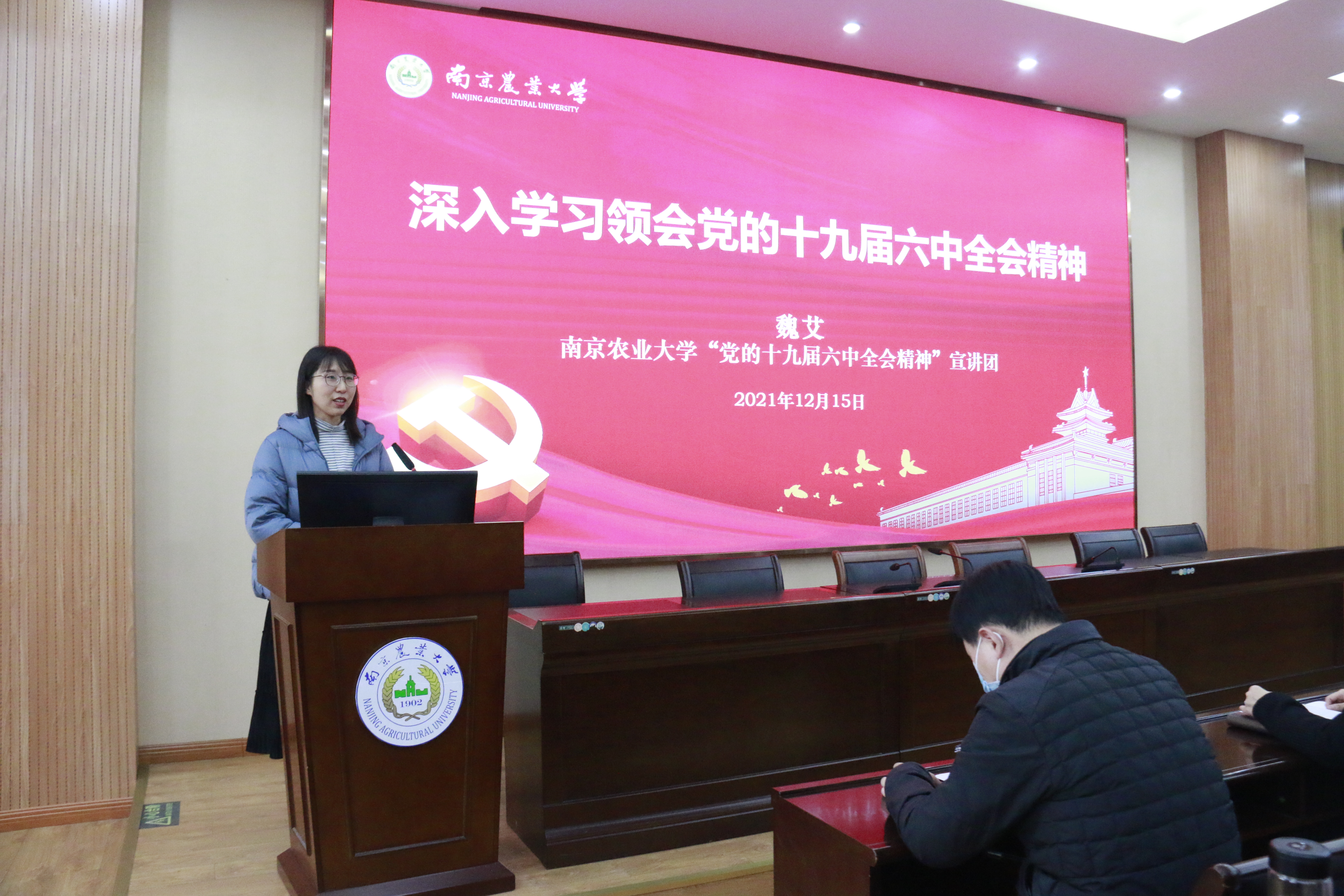 于12月15日下午举行了党的十九届六中全会精神学习辅导报告会。报告会邀请了我校党的十九届六中全会精神宣讲团成员、马克思主义学院魏艾副教授主讲,学院党委书记朱筱玉主持报告会。