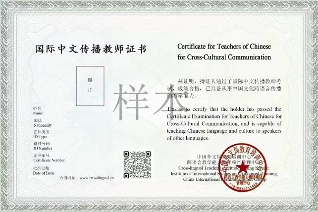 据了解,国际中文传播教师证书具备以下特色优势:1)该证书长期有效;2)表明持证人具备了跨语言环境下进行文化传播的相关知识和技能,能胜任在国内外进行中华语言文化教学的工作;3)可作为相关机构选拔出国汉语教师及聘用外籍教师的参考依据;4)是高等院校、中小学、语言教育机构聘用外语教师的参考依据;5)是相关行业求职的能力证明。国际中文传播教师证书考试将于今年下半年正式推出,拟定每年1月、5月、10月定期举办。凡有志于赴国外教授中国语言文化的国际汉语教师或有志于从事跨语言教学传播工作的人士,具有大学以上学历(含在读学生)、普通话标准且同时具备外语基础的考生均可报考。