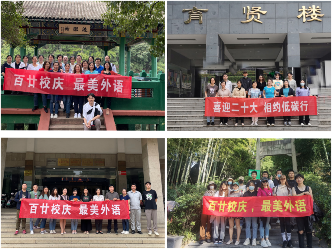 秋风送爽,丹桂飘香,为迎接党的二十大胜利召开,为进一步丰富老师们的文体生活,2022年9月-10月,外语学院联合学院校友会南京分会一起组织了“百廿农情 喜迎二十大”健步走系列活动。活动分别在南京中山陵、我校浦口校区校友山以及南京紫金山等地分别进行。共有将近70余名教职工和校友参加了本次活动。
