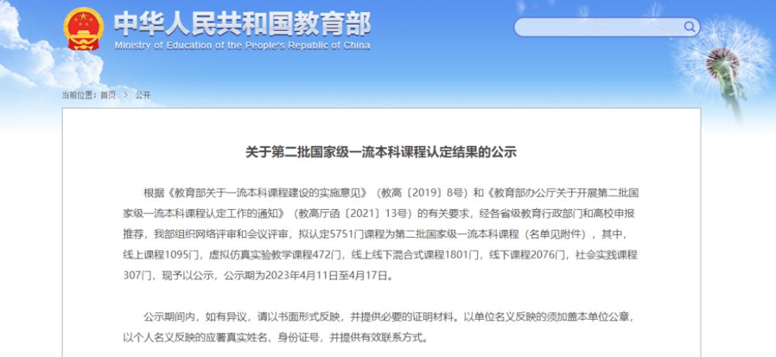 近日,教育部发布了《关于第二批国家级一流本科课程认定结果的公示》,麻豆视频