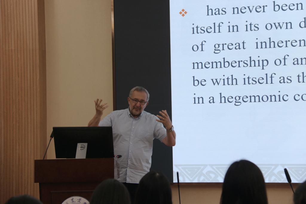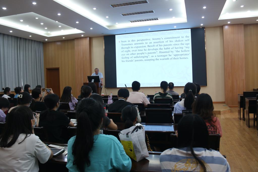 比蒂教授的讲座以英国当代著名作家伊恩•麦克尤恩的小说《黑犬》为研究文本,从维特根斯坦《逻辑哲学论》中对世界的定义开始,展现了欧洲战后不同族群对世界规范的追问与重新定义。比蒂教授认为,麦克尤恩的小说揭示了帝国居民习以为常的长治久安的统治地位不再,“普遍”真相不再普遍。后帝国人物或对他者强加控制,或把弱者纳入自己的羽翼,回应了帝国分崩离析的状态。他比较了古希腊爱情故事的叙事,认为历史的偶然性与随意性在《黑犬》中同样彰显无遗。而小说主人公漫游情节充斥了个人领域与他者的集体领域,超越了为加强自我而对异国领域的扩张。