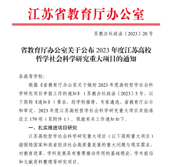 近日,江苏省教育厅公布了《2023年度江苏高校哲学社会科学研究重大项目立项名单》,麻豆视频