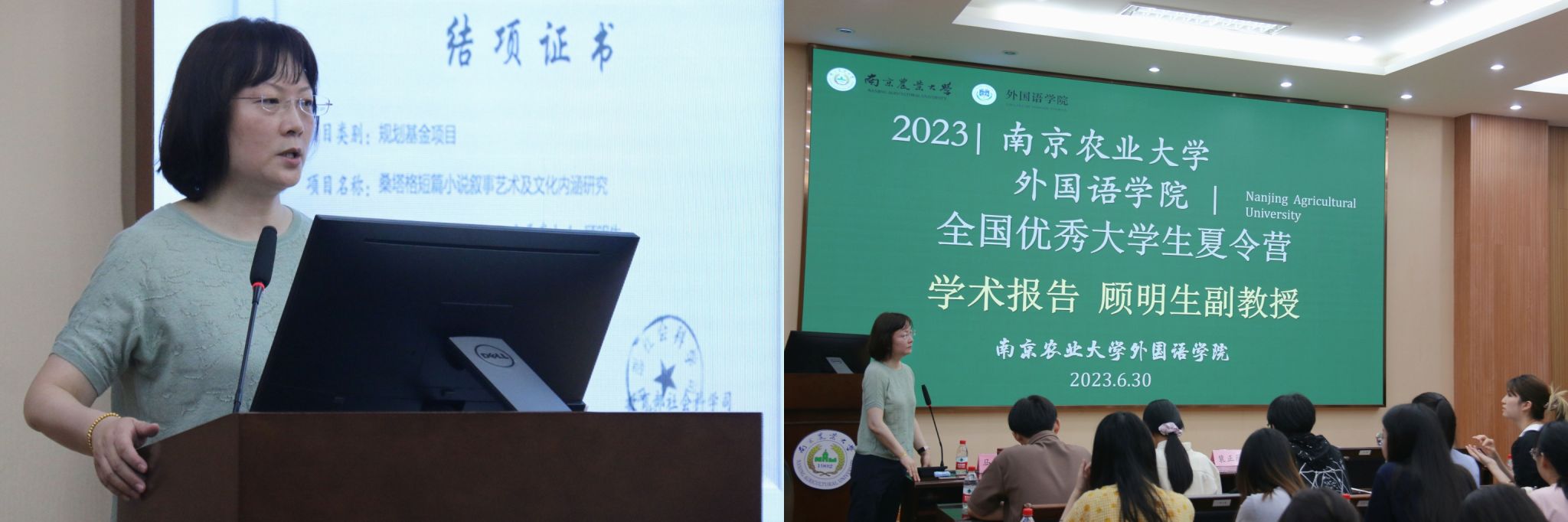 7月1日上午,按照日文/英文个人介绍、现场翻译、自由交流三个部分对营员进行了语言能力与学术倾向考核。绝大多数营员表现优秀,双语能力突出,给评委老师留下了深刻的印象。7月1日下午举行了夏令营闭营仪式。主持人樊淑英副教授宣读优秀营员名单,并邀请营员发言。营员们回顾了两日夏令营活动,交流了个人的感悟与思考,表达了笃行不倦的求学志向。副院长马秀鹏在总结致辞中向所有营员表示祝贺。他强调,大家要海纳百川,兼收并蓄;坚守初心,逐梦前行。最后,他向各位同学发出邀请,选择美丽的南农校园深造学习。游衣明副教授宣布夏令营圆满结束。