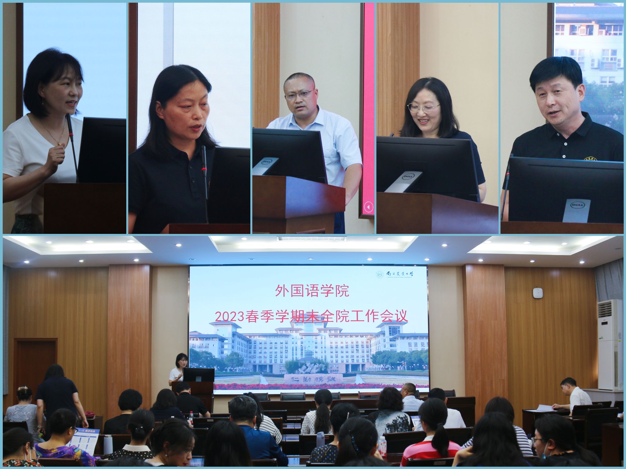 2022-2023学年第二学期期末总结大会在教学楼七楼报告厅举行。学院班子全体成员以及教职工参加了会议。会议由学院党委书记董红梅主持。