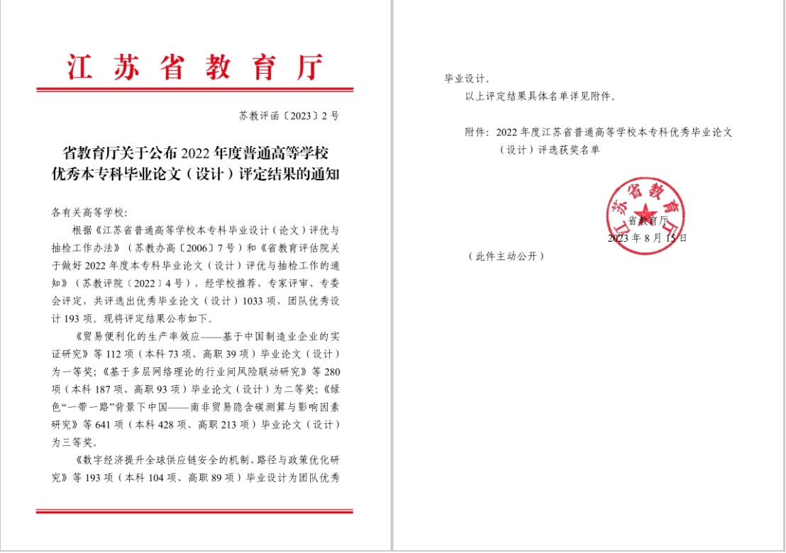 江苏省教育厅近日发布了2022年度江苏省普通高校优秀本专科毕业论文(设计)的评定结果,我校共获优秀毕业论文(设计)19项,其中麻豆视频