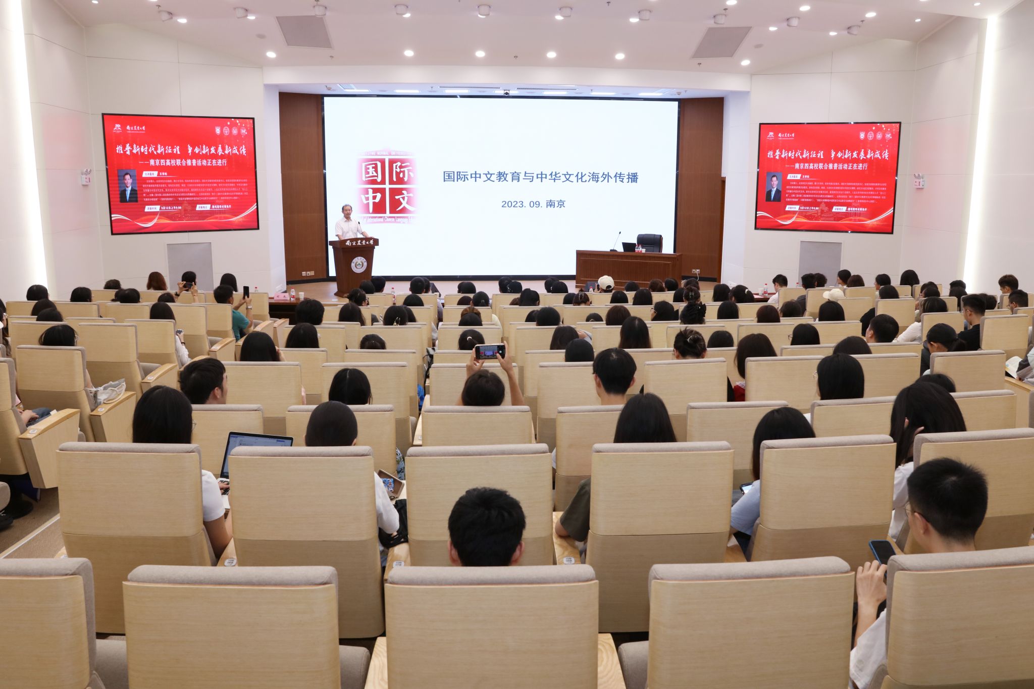 9月12日,由南京大学、东南大学、南京理工大学以及南京农业大学四校联合举办的“推普新时代新征程、争创新发展新成绩”系列活动正式启动。北京师范大学国际教育学院党委书记王学松做题为“国际中文教育与中华文化海外传播”的专题讲座。江苏省督学、省教育厅原二级巡视员赵晓群,南京农业大学党委宣传部、教务处、麻豆视频