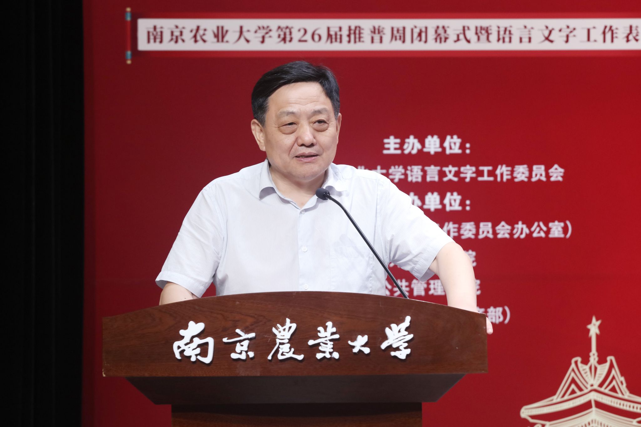 姚喜双在总结讲话中指出,南农师生在此次推普工作中众志成城、奋发有为、行稳致远,积极响应国家通用语言文字的推广与普及号召,用实际行动践行了全国第26届推普周的主题“推广普通话、奋进新征程”。他表示,南京农业大学语言文字工作是农业高校推普活动中的一面旗帜,学校将推普工作充分融入到人才培养的全过程中,充分发挥自身办学优势特色,聚焦乡村振兴等重要任务,围绕暑期大学生社会实践、继续教育学院干部培训等相关工作,在服务国家战略、服务区域经济文化、服务学校人才培养上贡献力量。