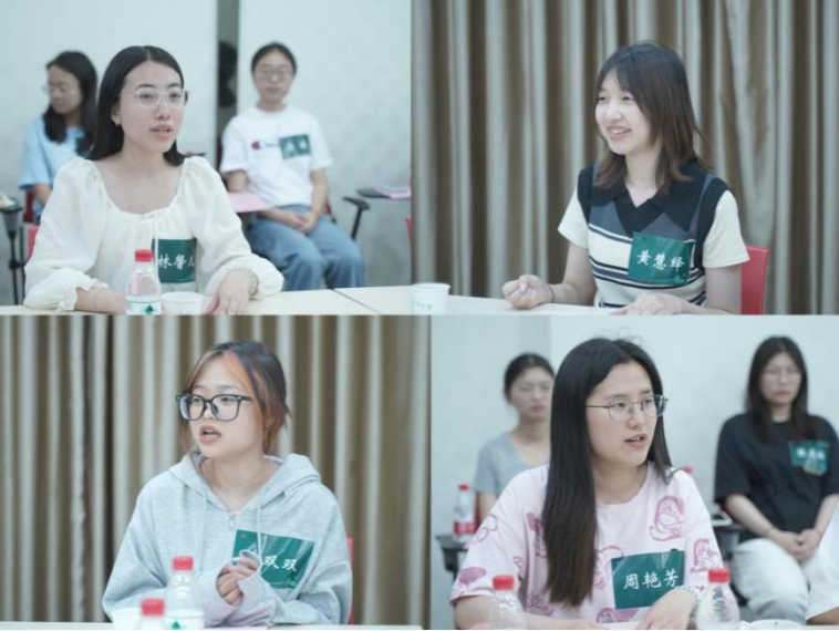 12舍531宿舍的5位同学分别汇报了自己的毕业去向及未来发展规划。英语202班林馨儿心怀成为一名优秀文化传播者的决心,将去厦门大学英语笔译专业继续学习。日语201班周艳芳曾担任学院党建班班长,保研去了苏州大学学习马克思主义理论专业,她期待自己未来能成为一名思政课老师。日语201班胡梦然热心公益事业,已经入选校第26届研究生支教团,即将赴贵州麻江从事一年支教工作。日语201班符双双考入哈尔滨工业大学会计学专业。日语201班黄慧绎毕业后将入职苏州张家港某国企从事外贸相关工作。