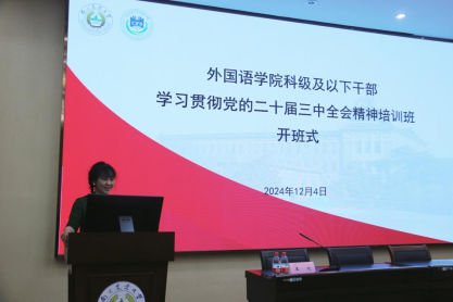 宣讲开始前,学院党委按照学校要求,进行学院科级及以下干部学习贯彻党的二十届三中全会精神培训班开班式启动。