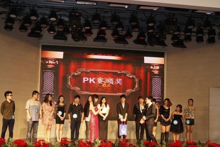 兼职辅导员周芹、以及来自各个兄弟学院的学生会主席。此外,本次比赛还特地增加了微博墙这一互动活动,观众随时可放松短信支持喜欢的选手或发表自己的感想,这是本次比赛的一个亮点。