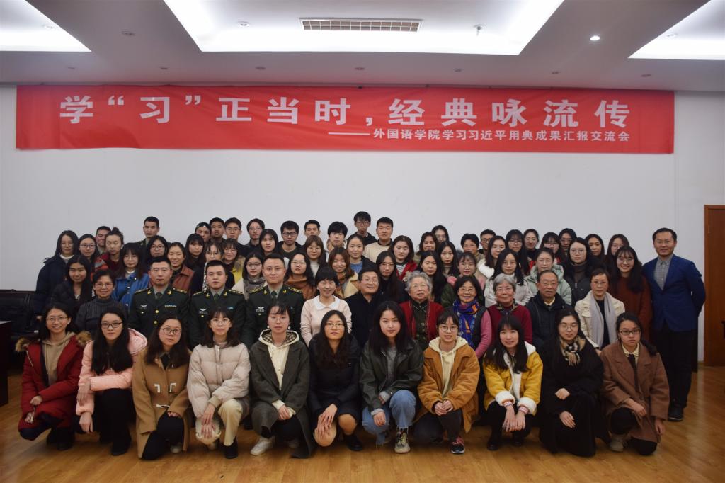 于教学楼七楼报告厅开展习近平总书记用典学习成果汇报交流会,此次交流会也是“学习正当时,经典咏流传”主题党日活动的成果展示部分。麻豆视频