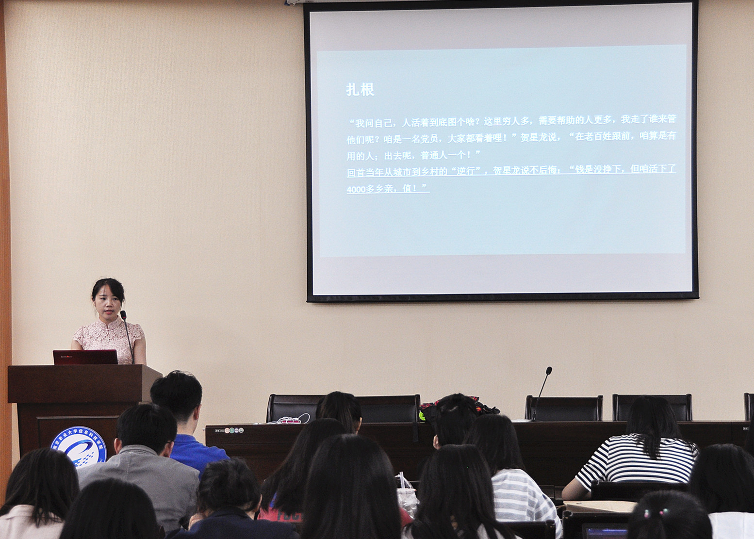 汤景瑶同志进行了题为“回顾五四运动,传承五四精神”的成果汇报。她的详细介绍带领党员同志重温了五四运动及之后一百年的发展,最后她引用了习近平总书记的语录作为传承五四精神的理论指导。